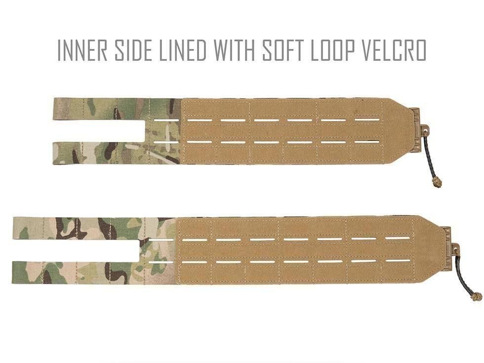 MOLLE/PALSを全長にわたって搭載し、内側には柔らかなループベルクロを配置。