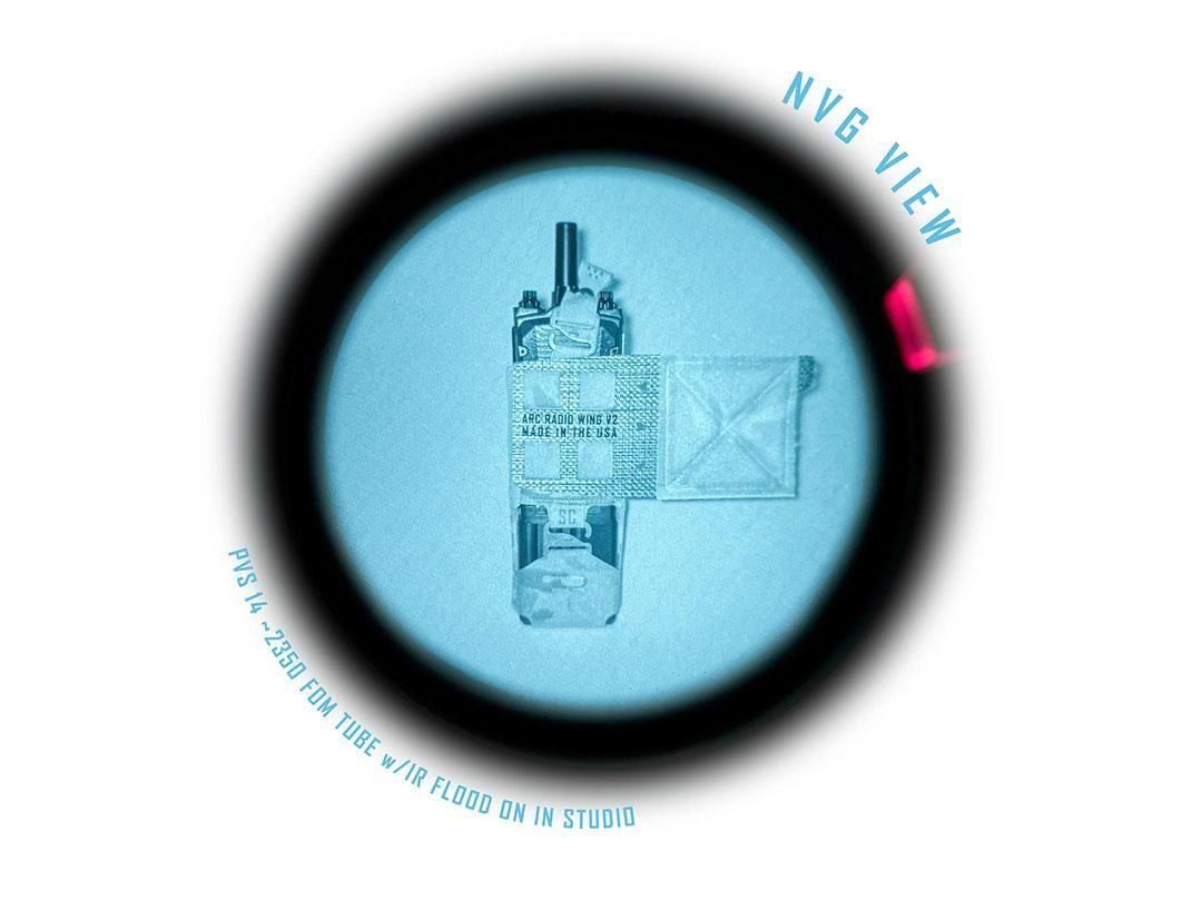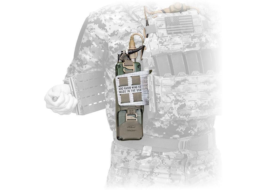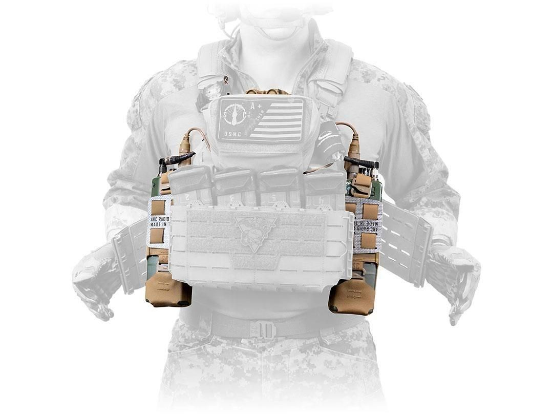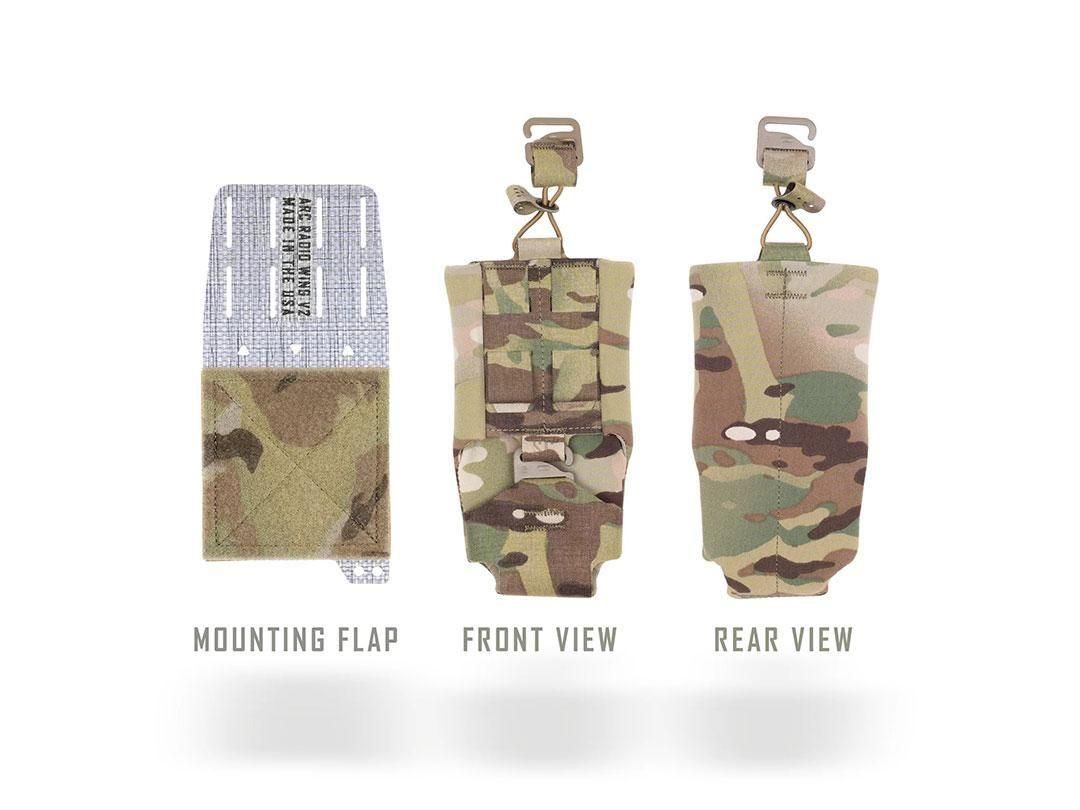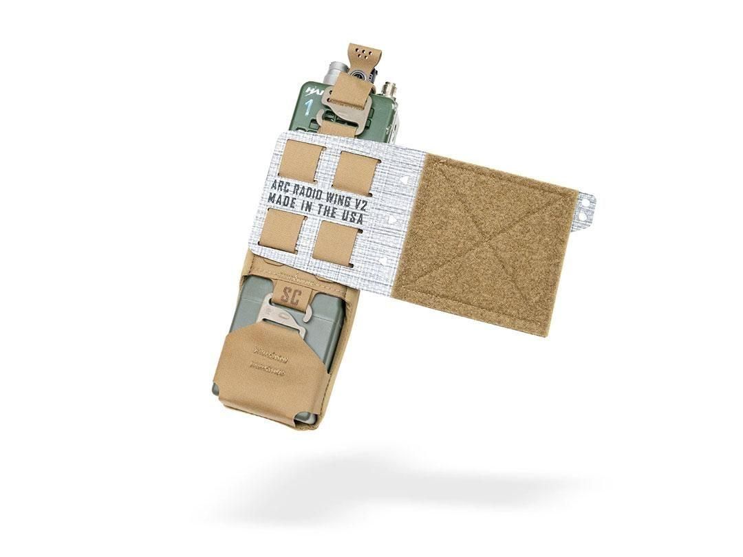 ARCラジオウイングポーチはPRC-148の角が何時間も脇腹に突き刺さることに苦痛を感じ、そこからヒントを獲て開発しました。ARCラジオポーチ V2 は、 PRC163、PRC152、PRC148、MPU5などのミリタリーサイズのラジオをカマーバンドの下に収納できるように設計されています。