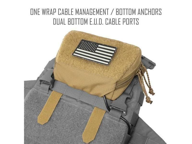外装下部のOneWrapストラップは、ケーブルマネジメントやMOLLE/PALSへの追加固定に使用可能。プレートキャリアとの一体感を重視しつつ、機能性と運用性を兼ね備えたポーチです。