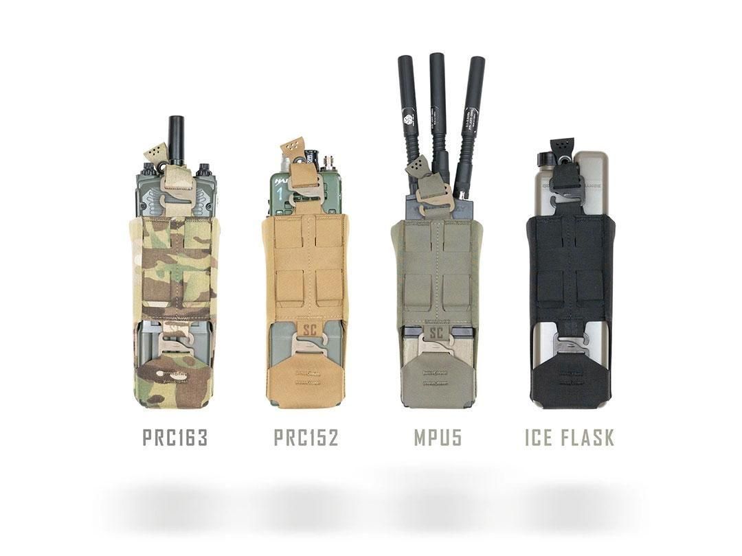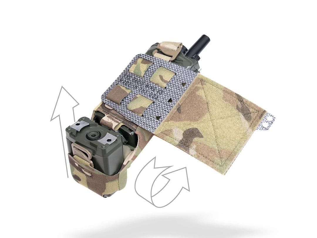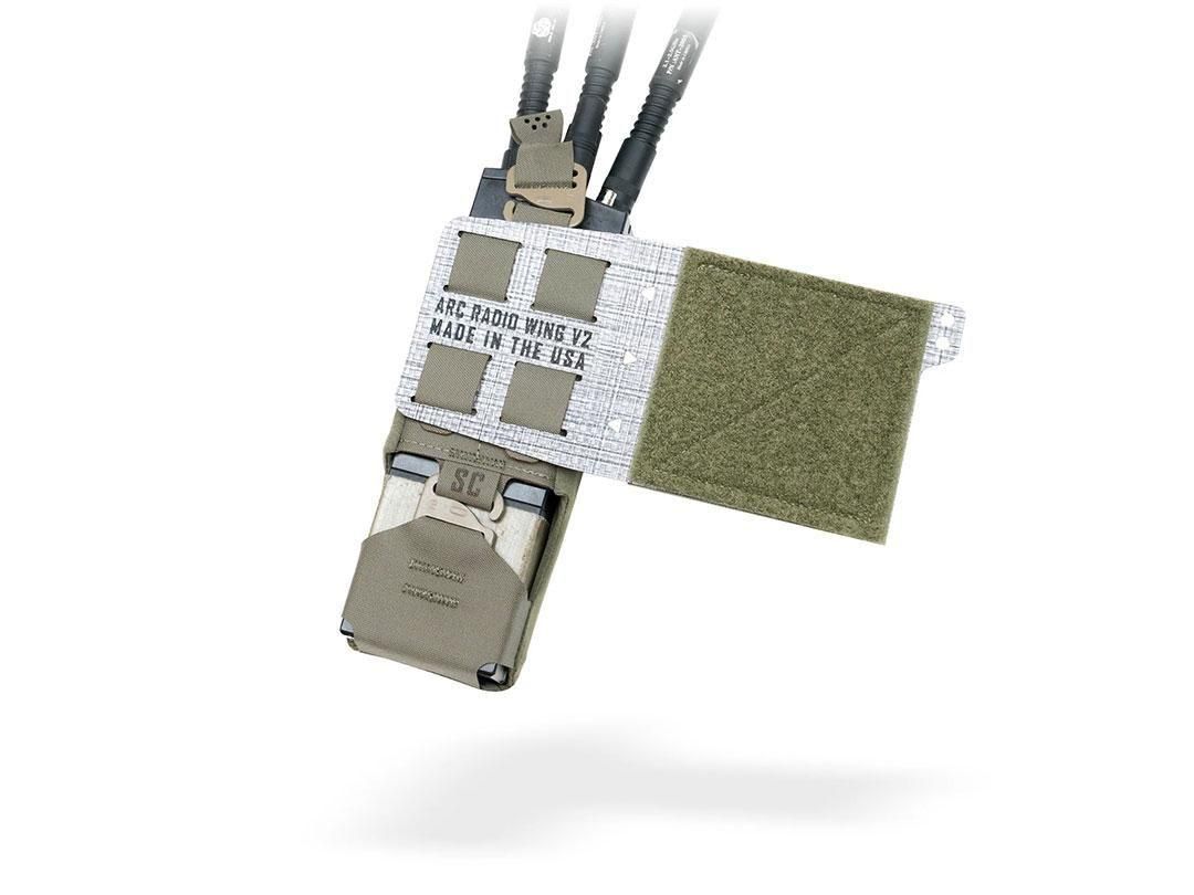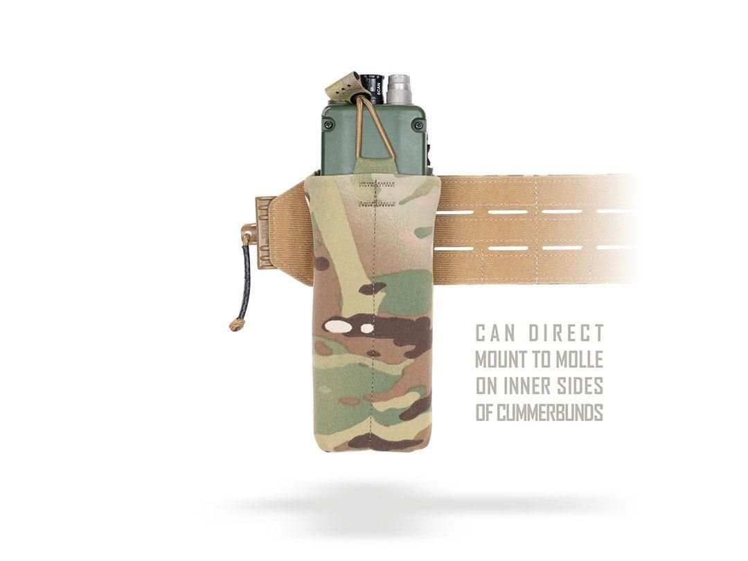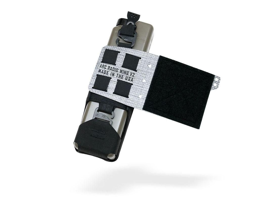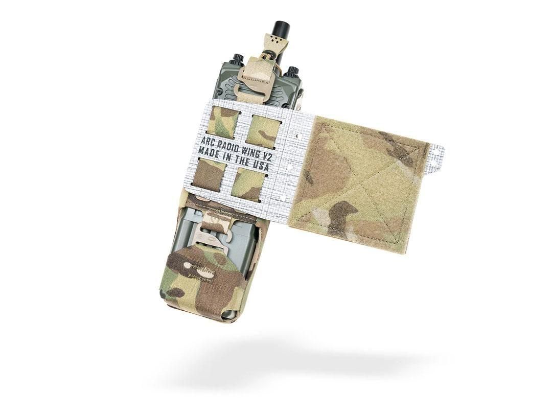ARCラジオウイングポーチはPRC-148の角が何時間も脇腹に突き刺さることに苦痛を感じ、そこからヒントを獲て開発しました。ARCラジオポーチ V2 は、 PRC163、PRC152、PRC148、MPU5などのミリタリーサイズのラジオをカマーバンドの下に収納できるように設計されています。